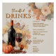 Bienvenido a su estación de bebidas de vacaciones con este poster de menú de bar cuadrado, impreso en papel brillante. Con un fondo beige neutro y una suave coloración acuática. Personalizar con cócteles, cócteles, cócteles, vinos y otras bebidas. Pareja a la perfección con toda la suite Muted Florals Thanksending Dinner para una presentación fiesta.