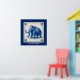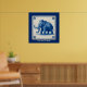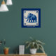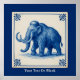 Un mamut humorístico, monótono, lana azul (mammathus primigenius) al estilo de una teja Delft. Personalizar agregando su propio texto.