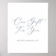 Este delicado azul polvoriento nuestro regalo para usted favorece la seña es perfecto para un boda moderno. El romántico diseño minimalista presenta una bonita y elegante tipografía gris azul sobre un fondo blanco con un aspecto limpio y sencillo.