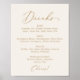 Póster Delicado Menú de Bebidas de Boda en Crema con Cali