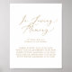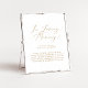 Este delicado signo de memoria de boda en oro es perfecto para una boda moderna. El diseño minimalista romántico presenta una tipografía amarilla dorada champán elegante y encantadora sobre un fondo blanco con un aspecto limpio y simple.