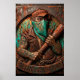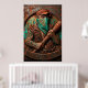 Crvena Zvezda ultra with a baseball bat. This bold embossed metal print features a tough tattooed hooligan in a cap and bandana holding a bat, with the iconic 'DELIJE SEVER 1989' banner below. Rustic distressed copper and teal finish gives it a raw, industrial, ultra vibe. Perfect gift for passionate Red Star Belgrade fans.