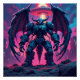 Schöne futuristische Fantasy Illustration eines Roboter Demons bei einem UFO. Schöne Farbgebung und Details.