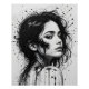 Un retrato de tinta negra de alto contraste de una mujer que gira marcadamente su cabeza a la derecha. Un lado de su cara se representa con un detalle intrincado, capturando la expresión y la forma, mientras que el otro lado se disuelve en salpicaduras y goteos fluidos, creando un contraste dinámico entre precisión y fluidez. El trabajo de arte evoca el movimiento, la transformación y la profundidad emocional a través de técnicas de tinta audaz.