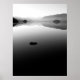 Una sola roca rompe la superficie lisa de Derwentwater en esta fotografía en blanco y negro del lago en invierno.