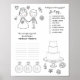 Página de colorear y actividad de boda que incluye I Spy personalizable y Cuántas palabras puedes formar con el juego de letras, así como decoración de pasteles y colorear.