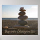 Hermosa fotografía de piedras balanceadas en la orilla. El texto dice "Descubre la quiropráctica" en una fuente moderna de caligrafía.