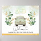 ¡Pite, haga sonar la bocina, grite y agite! Señal de bienvenida única de género neutral para conducir, que presenta elegantes vegetación de acuarela y un coche vintage chic