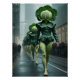 Una imagen surrealista y que invita a la reflexión, que representa una línea de figuras vestidas con elaborados disfraces con tema de col que caminan por una calle húmeda de la ciudad. Cada figura lleva un gran sombrero de col y un atuendo verde de hoja que se extiende por sus piernas, pareciéndose a una fusión de humanos y vegetales. Las cifras se ven desde un ángulo ligeramente bajo, con altos edificios de ciudades grises en el fondo y espectadores observando desde las aceras. La atmósfera parece un poco tenue y nublada.