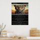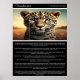 Un fuerte acercamiento de un leopardo, sus ojos radiando sabiduría y fuerza. Los detalles intrincados de su piel se exhiben en un entorno suave y natural, creando una sensación de intimidad y conexión. "Desiderata" y "Max Ehrmann" están situados de manera elegante, mientras que un extracto cuidadosamente elegido a continuación habla de los temas de la paz, el autodescubrimiento y la belleza inherente del mundo natural. La paleta de colores cálidos y la iluminación equilibrada realzan la sensación general de tranquilidad y contemplación.