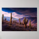Esta asombrosa foto de Getty Images muestra un paisaje de cactus al atardecer sobre el paso a Salinas fuera de Purmamarca, Jujuy, Argentina.