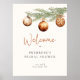 Póster de bienvenida minimalista para despedida de soltera de invierno con rama de pino pintada con acuarela decorada con adornos de bolas de Navidad.