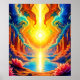 Sumérjase en una impresionante visión de luz divina y colores vibrantes. Esta obra de arte psicodélico presenta una ciudad cubierta por el sol que refleja la energía espiritual (Este diseño hecho con IA). ¡Haga el pedido hoy y acepte la alegría de ir de compras!