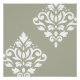 El diseño del damasco de hoja y pergamino se repite con un detalle blanco sobre un fondo verde sabio.