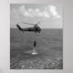 Esta foto muestra la recuperación de la cápsula de Libertad 7 (MR-3) de un helicóptero de la Marina de Estados Unidos. La misión MR-3 situó con éxito al primer astronauta estadounidense, Alan Shepard, en el espacio durante 15-1/2 minutos y regresó a salvo a la Tierra el 5 de mayo de 1961. Mercury Redstone 3 (MR-3, también designado Libertad 7) fue el primer vuelo de un cohete estadounidense con un humano a bordo (Alan B. Shepard, Jr.), ocurrido veintitrés días después del vuelo orbital de Yuri Gagarin, Vostok 1. Los objetivos de la MR-3 fueron: 1) familiarizar al hombre con una experiencia de vuelo espacial breve pero completa, incluidos el despegue, el vuelo a motor, el vuelo sin peso (aproximadamente 5 minutos), la reentrada y las fases de aterrizaje del vuelo; 2) evaluar la capacidad del hombre para actuar como unidad funcional durante el vuelo espacial demostrando el control manual de la actitud de la nave espacial antes, durante y después del retroceso y mediante el uso de comunicaciones de voz durante el vuelo; 3) estudiar las reacciones fisiológicas del hombre durante el vuelo espacial; y 4) recuperar el astronauta y la nave espacial.
