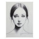 Dessin en noir et blanc d'un visage de jeune fille. Elle a les cheveux courts et peignée la raie au milieu .