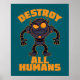 Personalizado vectorial ilustracion de un robot furioso preparándose para la batalla con el texto de Destroy All Humans. Palabras clave: robot, droid, androide, guerrero, batalla, gladiador, lucha, medio, enojado, loco, naranja, negro, máquina, futuro, inteligencia artificial, personalizado, vector, desagradable, ciboro, destrucción, humanos