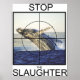 Foto de una ballena que se está rompiendo con las palabras "Detengan la matanza que la rodea". Matar ballenas es innecesario y debe detenerse antes de que sea demasiado tarde. Sacar el mensaje usando esta camisa.