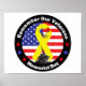 La cinta amarilla y la bandera de Iwo Jima izando con el fondo de la bandera estadounidense, y los mensajes de "Recuerda a nuestros veteranos" y "Día en memoria" para honrar y recordar a nuestros veteranos.