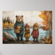Póster Día de Otoño con la Familia Oso en el Lago