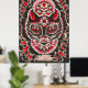 Sorprendente diseño de gatos negros y rojos en la tradición del Día de los Muertos.