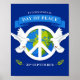 El diseño del Día Internacional de la Paz incorpora una tranquila paleta de colores de azules, verdes y blancos, creando un ambiente tranquilo. En el centro, una paloma lleva con gracia una rama de olivo, que simboliza la paz y la reconciliación. Alrededor de la paloma, un globo estilizado refleja la naturaleza global del día, enfatizando la unidad entre las naciones.