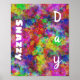 Un poster abstracto vibrante con texto blanco peculiar en dos tipos de letra diferentes. Personalizable con su propia redacción.