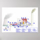 El carbón se transporta (14) desde una pila y un suelo externos a un polvo muy fino por grandes esferas metalizado en el molino de combustible pulverizado (16). Allí se mezcla con aire precalentado (24) conducido por el ventilador de tiro forzado (20). La mezcla caliente de aire y combustible se fuerza a alta presión en la caldera donde se enciende rápidamente. El agua de alta pureza fluye verticalmente por las paredes bordeadas de tubo de la caldera, donde se convierte en vapor, y se pasa al tambor de la caldera (17), donde el vapor está separado del agua restante. El vapor pasa a través de un colector en el techo del tambor hacia el supercalentador pendiente (19) donde su temperatura y presión aumentan rápidamente a unos 200 bar y 570°C, lo suficiente para hacer que las paredes del tubo brillen un rojo aburrido. El vapor se canaliza a la turbina de alta presión (11), la primera de un proceso de turbina de tres etapas. Una válvula regulador de vapor (10) permite el control manual de la turbina y el siguiente punto de ajuste automático. El vapor se agota de la turbina de alta presión y se reduce tanto a presión como a temperatura, se devuelve al recalentador de la caldera (21). El vapor recalentado se pasa entonces a la turbina de presión intermedia (9) y de allí pasa directamente al conjunto de baja presión (6). El vapor, ahora poco por encima de su punto de ebullición, se pone en contacto térmico con agua fría en el condensador (8), donde se condensa rápidamente de nuevo en agua, creando un vacío cercano en el pecho del condensador. El agua condensada se pasa a continuación por una bomba de alimentación (7) a través de un deaerador (12) y se calienta previamente, primero en un calentador para piensos (13) alimentado por vapor extraído del conjunto de alta presión, y después en el economizador (23), antes de ser devuelto al tambor de la caldera. El agua del condensador se pulveriza dentro de una torre de refrigeración (1), creando una columna de alta visibilidad, antes de ser bombeada de nuevo al ciclo de agua de refrigeración. Los tres conjuntos de turbinas están acoplados en el mismo eje que el generador eléctrico (5) que genera una tensión de nivel intermedio (normalmente de 20 a 25 kV). El transformador de unidad (4) intensifica este proceso hasta una tensión más adecuada para la transmisión (normalmente de 250 a 500 kV) y se envía a la red de transmisión (3). El gas de escape de la caldera lo extrae el ventilador de tiro inducido (26) a través de un precipitador electrostático (25) y luego se descarga a través de la pila de chimenea (27). Los derechos de reproducción de la imagen se pueden encontrar en el enlace cerca de la parte inferior de esta descripción. Rótulo de hasta el Sr. Rebates GRATIS y ahorrar 12% en cualquier orden de zazzle además de una bonificación de $5.00 de suscripción Todos los derechos reservados; sin prejuicio, recurso o aviso (U.C.1-308) Derechos de reproducción de imagen: http://commons.wikimedia.org/wiki/File:PowerStation3.svg carbón "combustible fósil" "central de carbón" "central de energía térmica" "central de carbón" "central térmica" "central térmica" "central térmica de carbón" "central térmica de carbón" "central de energía de combustibles fósiles" "diagrama de centrales eléctricas" "diagrama de centrales eléctricas" "diagrama de centrales de carbón" "distribución de centrales de carbón" "energía de carbón"