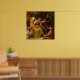 Diana and her Companions (1654) by Johannes Vermeer is a calm, intimate mythological scene set in a shadowy woodland. Diana, the Roman goddess of the hunt, sits quietly among her attendants while one companion gently washes her foot in a brass basin, an everyday and tender ritual that contrasts with the grandeur often associated with classical mythology. Warm golds, deep reds, and midnight blues glow against the dark background, and Vermeer’s soft, natural light gives the figures a lifelike stillness. A resting dog and small details like fabric, stone, and greenery add to the sense of privacy and quiet, making this artwork feel both timeless and deeply human.