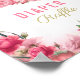 Este es el letrero de rifa de Diaper para la ducha de bebé. El diseño es un flamingo rosa, bailarina, mamá y niña, con flores de rosa rosado en la cabeza y un ramo de rosa más grande al lado de los cuerpos. Suave fondo rosa con bonitos triángulos dorados. Centro blanco con flores rosadas de rosa en el borde inferior.