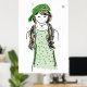 Póster Dibujo caprichoso Moderno Chica Vestido verde y Go