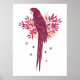Ara Parrot Borgoña Rojo Tropical Poster de dibujo. Dibujo de un loro en hojas tropicales.