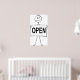 Decora tu espacio con un cartel divertido que envía un mensaje claro. Este diseño presenta una figura de palito sonriente sosteniendo un letrero de “ABIERTO” en un estilo simple de dibujos animados. Ideal para entradas de tiendas, oficinas en casa, estudios o espacios de trabajo creativo, este cartel combina líneas limpias y vibraciones amistosas para crear un aspecto acogedor. Una excelente manera de mostrar la energía de puerta abierta con humor y encanto.