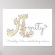 Bonito Un poster con un nombre de arte monograma perfecto para una habitación para chicas o una sala de juegos en tonos grises, blancos, amarillos, rosas y violetas. Personalice con el nombre de su hijo comenzando por A, y denomine el significado para un toque realmente personalizado al dormitorio o vivero de su hijo, este ejemplo es para el nombre Amistad de Amistad de Amistad. Tranquilidad, comprensión y pura. La impresión poster es ideal para un recién nacido, un bautizo o una ducha de bebé. © Único A monograma descripción del dibujo de corazones y flores y diseño gráfico de arte de Sarah Trett. www.sarahtrett.com para www.mylittleeden.com