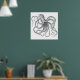 El pulpo náutico vintage steampunk kraken sea monstruo del sketch de antigüedades de la línea de la placa del libro de dibujos gris / negro / poster blanco. Perfecto para la sala náutica.