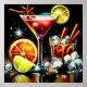 Póster Dibujo Pastel Cóctel Rosa Citrus Slices Spices
