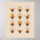 Bonito Póster para la habitación de tus hijos con 12 ilustraciones de dibujos animados de divertidas y lindas Abejas de Miel colocadas en el fondo del panal. Todas las abejas tienen diferentes expresiones faciales: sonrisa, risa, guiño, triste, etc. No dudes en contactarme a través de Zazzle si necesitas ayuda para crear productos a juego, por favor.