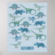 Montones de dinosaurios azules, Tyrannosaurus rex, Spinosaurus, Stegosaurus, Diplodocus y Triceratops sobre un fondo azul medio. Cambie el nombre a personalizar.