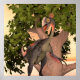 Representación digital 3D de un gigantoraptor de dinosaurio sobre un cielo rojo y un fondo de árbol verde