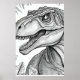 A vicious looking t-rex dinosaur, in black and white, on a wall poster for you to color or display, as is.