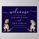 Póster Dinosaur Theme Navy Blue Wedding Welcome Sign
