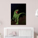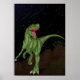 Un Allosauro corre bajo un cielo nocturno lleno de estrellas y meteoritos en caída. ¡Esta obra de arte detallada se puede personalizar! Puede cambiar el tamaño o la posición de la imagen, así como añadir sus propias imágenes y texto.