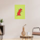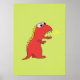 Impresión poster de dinosaurios lindo con un ilustracion colorido de un personalizado rojo de un dinosaurio T-Rex con un aire ardiente sobre fondo verde. Esta tirita tiene colores vivos y es apropiada para los niños y también para los adultos. :)