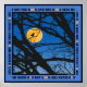 Poster infantil. Silhouette de pájaro, encaramada en un árbol frente a la luna. Frontera poética.