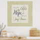 Confortable versículo de Escritura de Romanos 15:13, "Que el Dios de la Esperanza te llene de toda alegría y paz" en un estilo tipográfico contemporáneo con colores apagados. Diseñado en memoria de Kim.