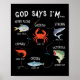 Póster Dios dice que estoy pescando versos de la Biblia d