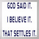 Cartas sencillas y llanas lo dicen tal como es: "Dios lo dijo. Yo lo creo. Eso lo resuelve." Gran manera de compartir tu fe en Dios y creencia en tu religión. Gran regalo para ocasiones religiosas como bautizos, confirmaciones, primeras comuniones, bodas, ordenaciones y más. También es bueno en Navidad, Pascua y cumpleaños.