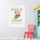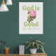 Un hermoso cartel cristiano para pared con la frase alentadora “Dios es Bueno Todo el Tiempo” con una ilustración vintage de rosa rosa. Perfecto para decoración del hogar, paredes de nursery o como regalo inspirado en la fe.