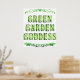 Diosa verde del Jardín que dice en letras de flores vintage decoradas en tonos verdes y amarillos.