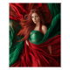 Un diseño impresionante con un modelo de cabello rojo con tela verde y roja. El contraste del vello rojo intenso con el tejido verde y rojo vivo crea una imagen atractiva, perfecta para expresar la individualidad audaz. El verde evoca el crecimiento y la armonía, mientras que el rojo simboliza la pasión y la energía, combinación que encarna la confianza y el talento.